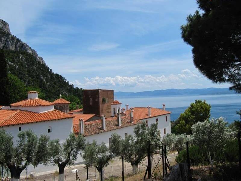 Women today Saviour Monastery is located 4 km north of Kymi, a steep and desolate surroundings, 250 meters above sea level.
