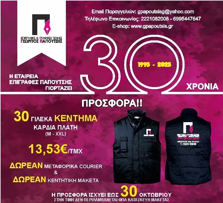 Η εταιρεία Επιγραφές Παπουτσής ιδρύθηκε πρίν από πολλά χρόνια από τον Γεώργιο Παπουτσή και δραστηριοποιείται στον χώρο της χονδρικής και λιανικής πώλησης ρούχων, ρούχων επαγγελματικής χρήσης, υποδημάτων καθώς επίσης και στην παροχή διαφημιστικών υπηρεσιών.