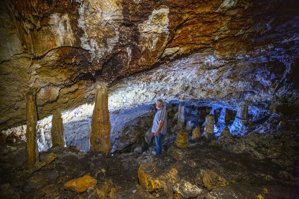 «Η σπηλιά Σκοτεινή» είναι ένα σπήλαιο το οποίο βρίσκεται στη θέση «κακαλίτσα» σχεδόν στην κορυφή της πλευράς, μιας απότομης και ασυνήθιστης σε ομορφιά χαράδρας ενός ασβεστολιθικού βουνού με ύψος 440 μέτρα. Στην κορυφή του βουνού της άλλης πλευράς της χαράδρας βρίσκεται ερειπωμένος Ενετικός πύργος, στα πόδια του οποίου είναι κτισμένο το ωραίο παλιό εκκλησάκι του «Αγιονικόλα», που πρόσφατα ανακαινίστηκε με πρωτοβουλία του γιατρού Νίκου Γιαννούλη και εγκαινιάστηκε από τον Μητροπολίτη Καρυστίας και Σκύρου κ Σεραφείμ. Η συνολική εικόνα της χαράδρας, των δύο κορυφών- κακαλίτσας και Αγιονικόλα – και του ρέματος χόνδρου, είναι φαντασμαγορική και η επιβλητικότητα του τοπίου εντυπωσιακή.